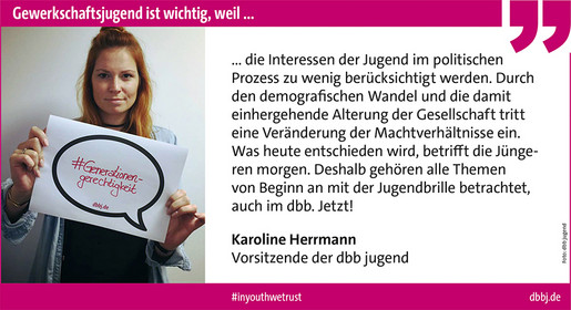 BildergalerieGewerkschaftsjugend ist wichtig, weil... 14. Dezember 2017 Die Rückmeldungen zu unsere Sprechblasenaktion, die wir am 27. Oktober 2017 auf facebook und instagram gestartet haben. Bitte klickt das Bild an, um zur Bilderschau zu gelangen. zurück