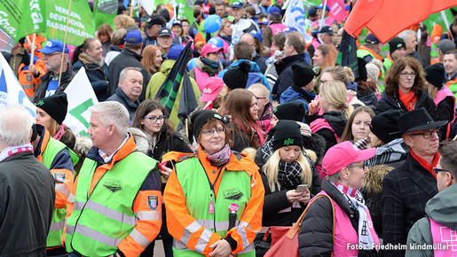 Landesweit sind die Beschäftigten des öffentlichen Dienstes am 1. März 2017 in den Warnstreik getreten, in Wiesbaden gab es eine zentrale Kundgebung. Damit erhöht sich kurz vor der zweiten Verhandlungsrunde um bessere Einkommens- und Beschäftigungsbedingungen der Druck auf die Landesregierung. „Unsere Forderung steht: Steigerung der Einkommen um 6 Prozent – inklusive eines Mindestbetrags als soziale Komponente und die Einführung der Stufe 6 ab Entgeltgruppe 9“, sagte Willi Russ, der für den dbb die Verhandlungen führt.