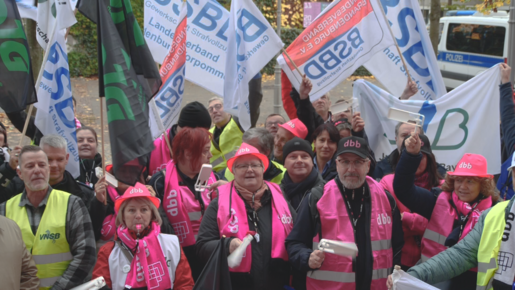 Mitglieder des Bundes der Strafvollzugsbediensteten Deutschlands (BSBD) und der Deutschen Justiz-Gewerkschaft (DJG) haben den Protest dahin getragen, wo er hingehört: in Hör- und Sichtweite der Politik. Sie forderten bei ihren Fachministerien das ein, was in diesen Zeiten eine Selbstverständlichkeit sein sollte – faire Bezahlung und bessere Arbeitsbedingungen.