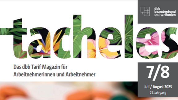 Der tacheles GESUNDHEIT und der allgemeine tacheles fusionieren zu Ende 2023. Alle Gesundheitsthemen werden wir dann in den zehn jährlichen Ausgaben des allgemeinen tacheles veröffentlichen. Sofern Sie den allgemeinen tacheles noch nicht beziehen, können Sie ihn gerne unter auf der Website des dbb bestellen. Selbstverständlich entstehen Ihnen für den tacheles keine Kosten.