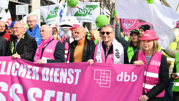 Kurz vor Start der dritten Runde der Einkommensverhandlungen am 27. März 2023 haben Vertreter der dbb bundessenioren gemeinsam mit Tarifbeschäftigten im dbb für deren Forderungen demonstriert.
