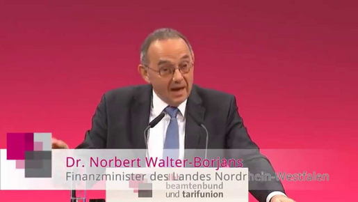 Weit auseinander liegende Positionen erwartet Walter-Borjans auch für die Mitte Februar beginnende Tarifrunde der Länder: „Auf der Grundlage von fast Null Inflation werden Länder und Gewerkschaften mit sehr unterschiedlichen Vorstellungen antreten.“ Letztlich gehe es darum bei „einer guten Gesprächskultur“ zu bleiben. Nur so gelinge es, die Länderhaushalte so aufzustellen, dass die Verwaltung ihren Aufgaben etwa für Sicherheit und Infrastruktur nachkommen und angemessen bezahlte und motivierte Mitarbeiter beschäftigen könne.